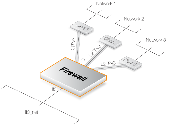 The illustration below shows a typical setup for L2TPv3 where the protected network on interface If3 can be accessed by L2TPv3 clients connecting to the L2TPv3 server listening on the interface If2.