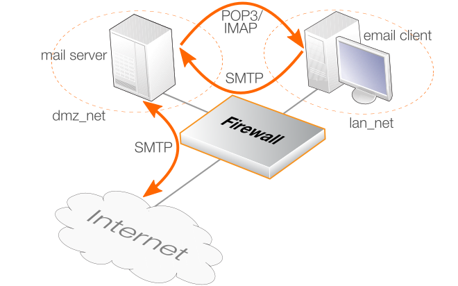 In this example, clients on the internal protected network lan_net are sending DNS queries out to the Internet using NAT via the interface wan. This is illustrated in the diagram below: