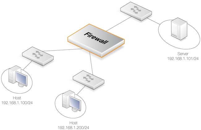 In a corporate environment, there may be a need to protect the computing resources of different departments from one another. The finance department might require access to only a restricted set of services (HTTP for example) on the sales department's servers whilst the sales department might require access to a similarly restricted set of applications on the finance department's hosts. By deploying a single Clavister firewall between the two department's physical networks, transparent but controlled access can be achieved.