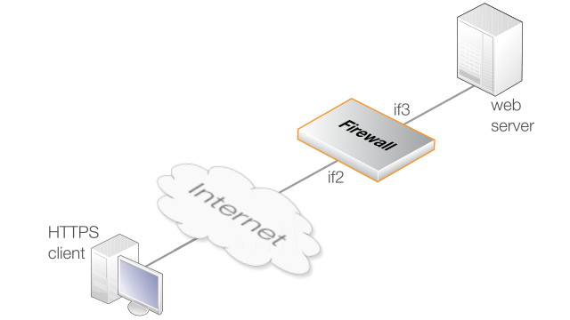 Shown below is a scenario where a client tries to connect to a server via a Clavister NetShield Firewall, the public Internet and a router.