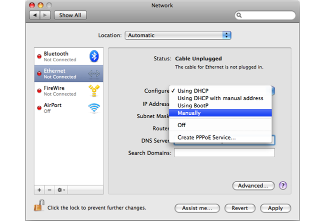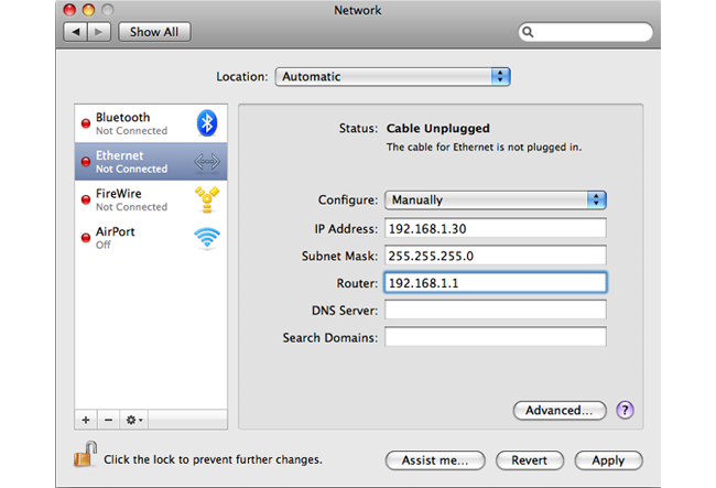 An Apple Mac can be used as the management workstation for initial setup of a Clavister Firewall. To do this, a selected Ethernet interface on the Mac must be configured correctly with a static IP. The setup steps for this with Mac OS X are: