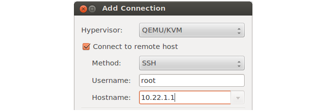 Start the Virtual Machine Manager (virt-manager) software and connect to KVM.