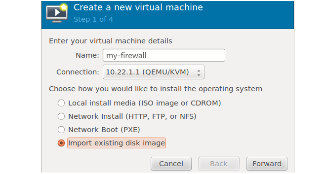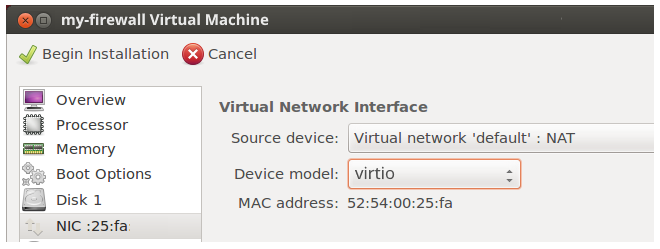 The virtual machine created can now be edited to meet specific requirements. The virtual machine will have no Ethernet interfaces and these should be added using the virtual machine manager.