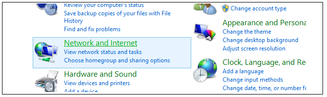 Select Network & Internet from the control panel.